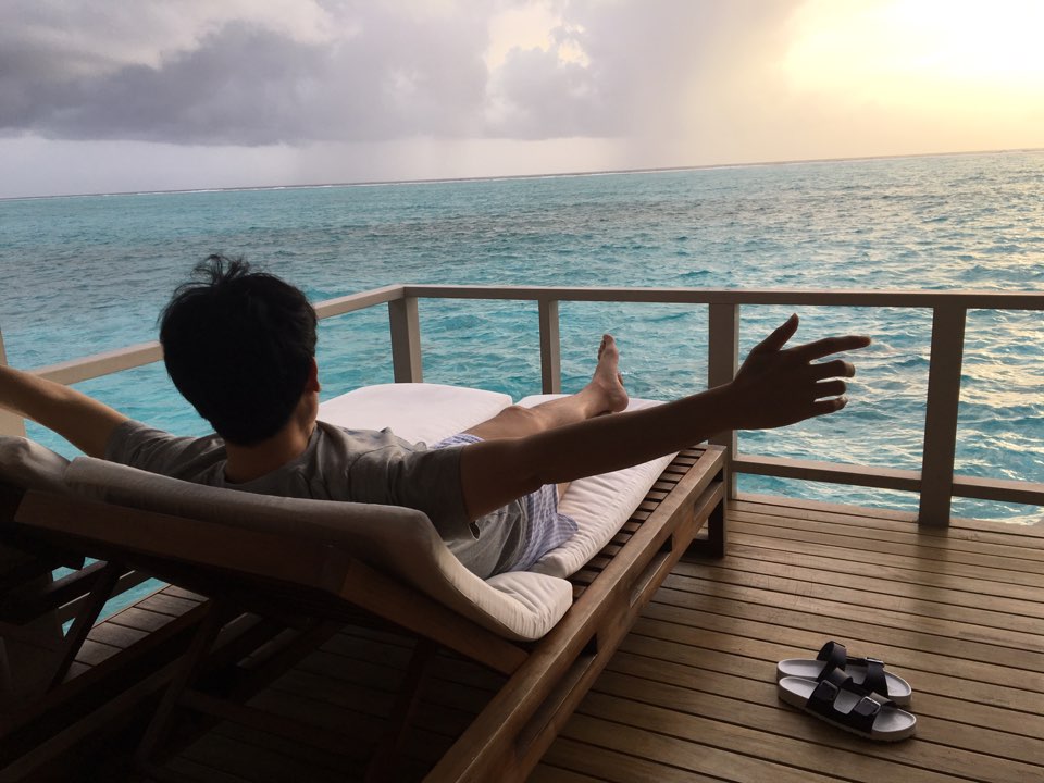 워터빌라 숙소에서 스멀스멀 선셋을 바라보는 아저씨 한분