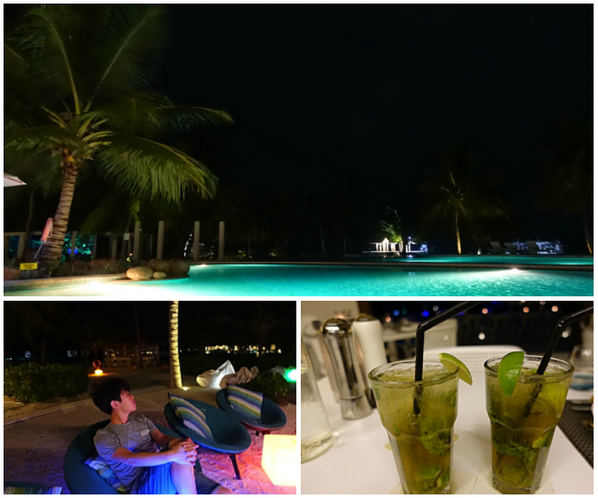 스노클링에서 돌아와서는 체력적인 문제로 오후일정을 취소하고 리조트를 즐기기로 했다. 모든 일정동안 다양한 음료를 잔뜩 먹었는데, 이날부터 시작이었다. 올인클루시브라고 모든 칵테일이 제공되지는 않고, 올인클루시브에 포함된 칵테일은 정해져 있었는데 딱히 불편을 느낄 정도로 한정적이지는 않았다. 질리도록 먹었던 모히또부터 코스모폴리탄, 피나콜라다, 탐콜린스 등 10가지 정도되는 칵테일이 올인클루시브에 포함되어있었고, 우리는 마셔보지 않았지만 럼, 진, 보드카와 이를 베이스로 섞어먹는 다양한 탄산음료도 제공되었다. 어찌보면 불편했지만 또 나름 즐거웠던 부분은 스태프마다 만들어주는 음료가 달랐고, 그래도 개인적으로 요청하면 내입맛에 맞는 칵테일을 만들어주기도 했다. 개인적으로는 처음 먹었던 모히또에 알콜함량이 너무 높아서, 매번 알콜을 조금 넣어달라고 요청했었고 결과는 대만족이었다.