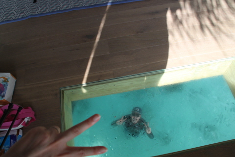 사진에서 보이는 창문같은 문을 열고 나가면 바로 풀 데크가 나옵니다!