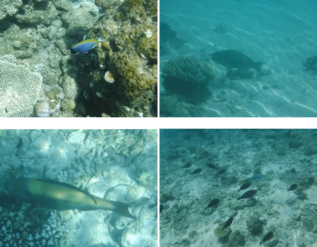 룸 근처에도 물고기가 꽤 많이 있었고. 리프 근처엔 훨씬 더 다양한 물고기들이 있었어요.