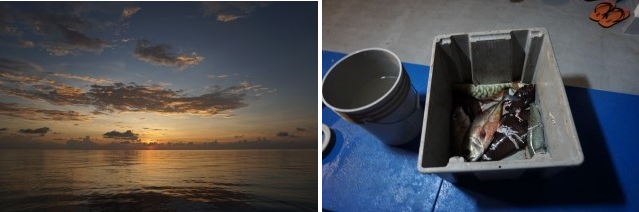 몰디브 바다의 썬셋과 이날 잡은 물고기들~