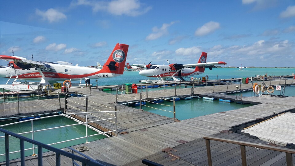 우리가 탄 수상뱅기!! 수상비행기의 장점은 몰디브의 바다를 하늘에서 한눈에 볼 수 있어서