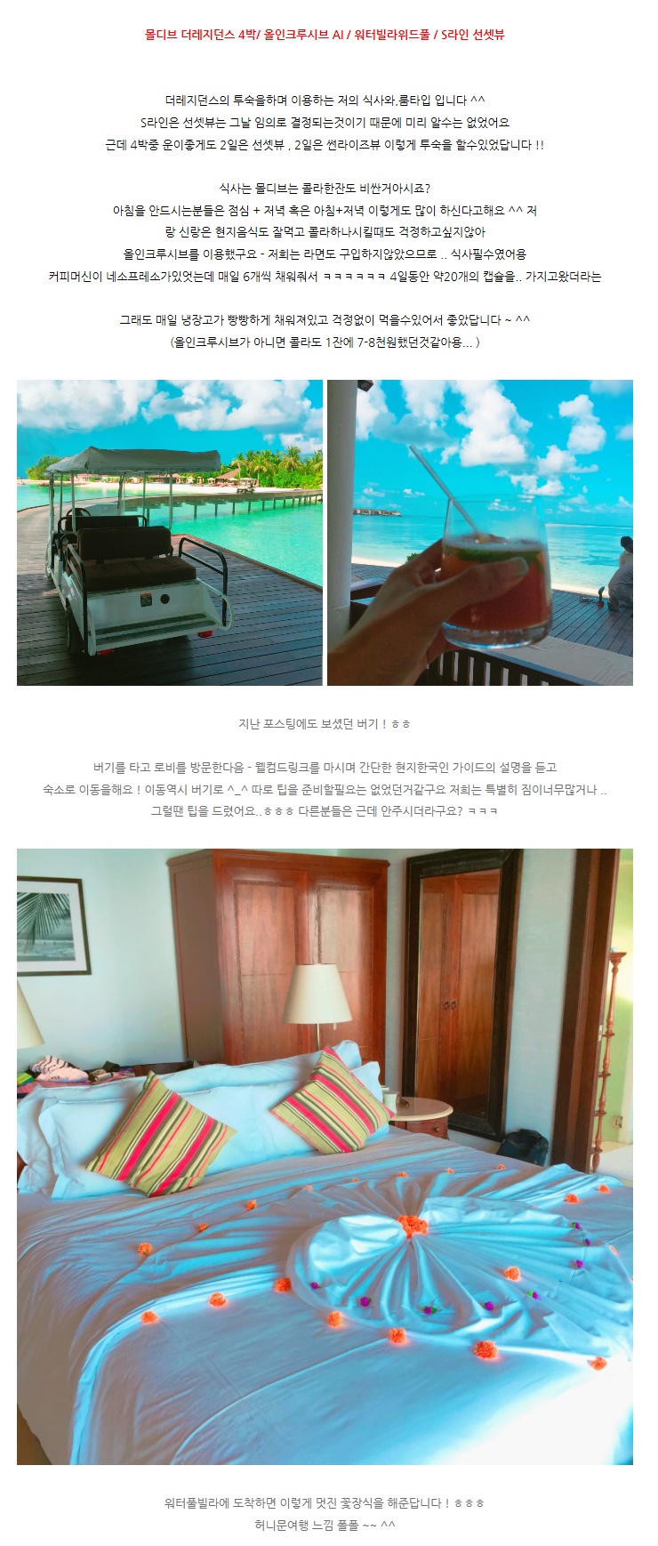 고민없이 몰디브+싱가폴로 결정했어요 ! 몰디브는 가격대가 조금 있는편이였지만