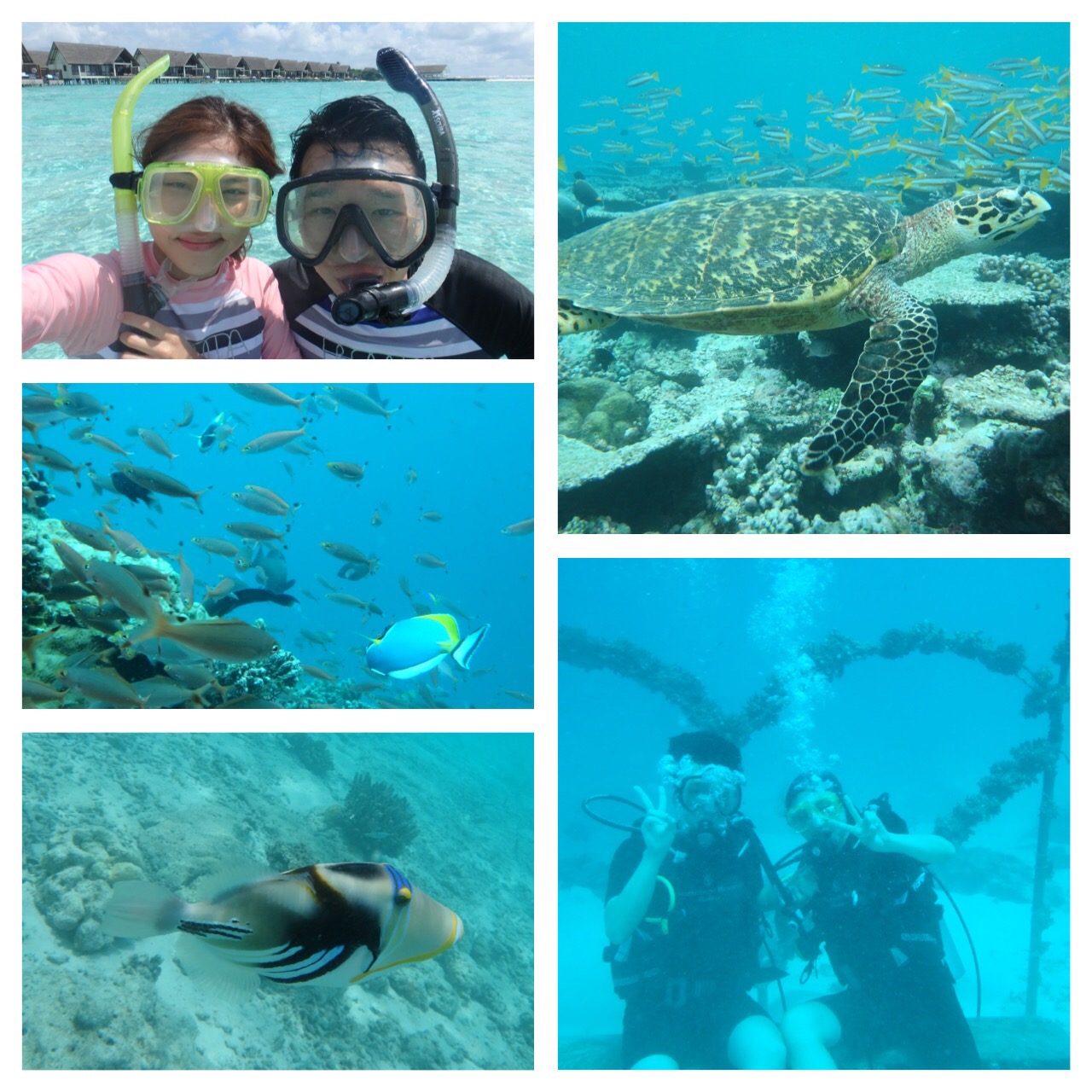 * 엑티비티 이용 : 엑티비티는 미리 예약해야 이용하실 수 있어서 액티비티 계획이 있으시다면 도착하시자마자 계획 짜시고 예약하시는 것이 좋아요. 특히 다이빙 같은 경우엔 비행 24시간 이후와 이전에만 하실 수 있어요. 저희는 스노클링 장비도 2개 사갔는데, 그 중 하나가 불량이어서 1개 대여해서 썼는데요, 결론은 따로 안 사가시고 장비 무료로 대여하시는 거 추천드려요. 대여 한 번 하시면 그날그날 반납할 필요가 없고 도착해서 빌리고 떠날 때 반납하시면 되거든요. 혹시 불량인 것을 대여할 경우 교체 받으시면 되고요. 오리발도 대여했습니다. 리조트 내 PADI 다이빙 훈련 기관이 있어 저희는 Discover Scuba Diving 코스 참여하고 수료증 받았습니다. 저희같이 처음 해보는 사람들을 위한 과정입니다. 자격증 있으시면 물론 할인된 가격에 체험하실 수 있고요. 다음 날은 배타고 나가서 오픈워터 다이빙도 경험해보았어요. 다이빙 계획 있으시면 수중카메라 챙겨가시면 좋아요. 스노클링 무료 강습도 있는데 저흰 다이빙 하느라 시간이 없어 이용하진 못했어요. 다이빙 하시지 않더라도 스노클링 만으로도 좋아요. 앞바다에 고기가 많고 예뻐요. 사진만 찍고 즐기기에도 충분하여 다 이용하지 못했지만 마사지, 요가, 크루즈 등 다양한 액티비티가 있으니 한 개 쯤 꼭 즐겨보세요.