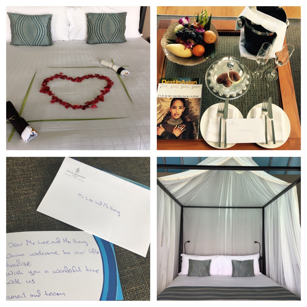 저는 지난 16년 12월 3일~12월 10일 여행산책을 통해 몰디브로 신행을 다녀왔습니다! 어느덧 한달이 지났네요. 결혼식 이후 정신없이 바빠 이제서야 후기를 작성하며 천국 같았던 기억을 추억합니다. 결혼식을 올리기로 결정하고 제일 먼저 알아보고 선택한 것이 바로 신.혼.여.행.이었습니다. 결혼 6개월 전에 계약을 했으니까요! 어떤 여행이든 그렇겠지만, 특히 허니문이기에 더 설레고 기대되었기에, 더욱이 그 장소가 몰디브기에!! 꼼꼼히 검색도 열심히 해보고 지인들에게도 많이 물어보아 여행산책 + 포시즌 란다 를 선택하게 되었습니다. 거의 알아볼 수 있는 모든 곳을 알아봤을 때 여행산책이 제일 저렴했어요. 오히려 저렴해서 혹시나 문제가 있지 않을까 걱정이 들기도 했는데 괜한 걱정이었습니다. 정말 세세하게 하나부터 열까지 잘 알려주셨고, 모든 계획대로 순조롭게 신혼여행을 잘 마칠 수 있었습니다. 작은 돈이 아닌지라 혹시 사기 당하진 않을까, 어떤 문제가 생기면 어떡하나 노심초사하면서 '조수현과장님'을 많이도 귀찮게했습니다. 그렇게 문의드릴 때마다 항상 너무나 친절하게 마치 가족의 일처럼 알아봐주시고 답변주시고 여러 편의를 봐주시며 최선을 다해 도와주셔서 신혼여행을 정말 만족스럽게 잘 다녀올 수 있었습니다. 다시 한 번 감사의 말씀을 전해드리며 저처럼 여행사와 리조트를 고민하시는 분들에게 작은 도움이 되고자 저의 후기를 적어보려고 합니다. ^^*