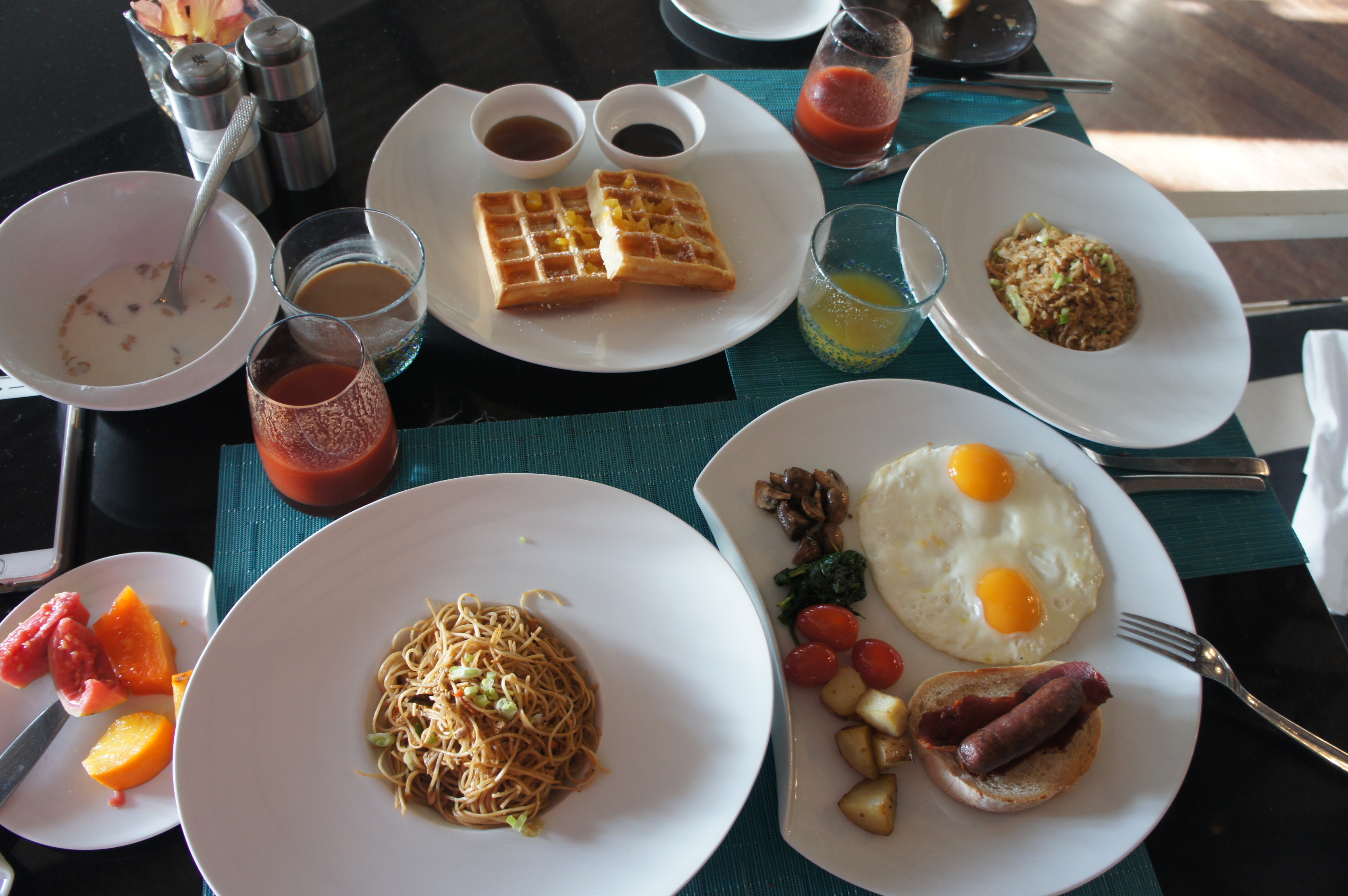 그리고 식사가 중요하죠??? 아침은 이정도는 나옵니다. 개인당 식사2개를 선택 할 수 있고, 빵과 치즈 햄..음료수는 무한 입니다. 특히 과일 쥬스가 매우 신선하여 행복한 아침입니다.