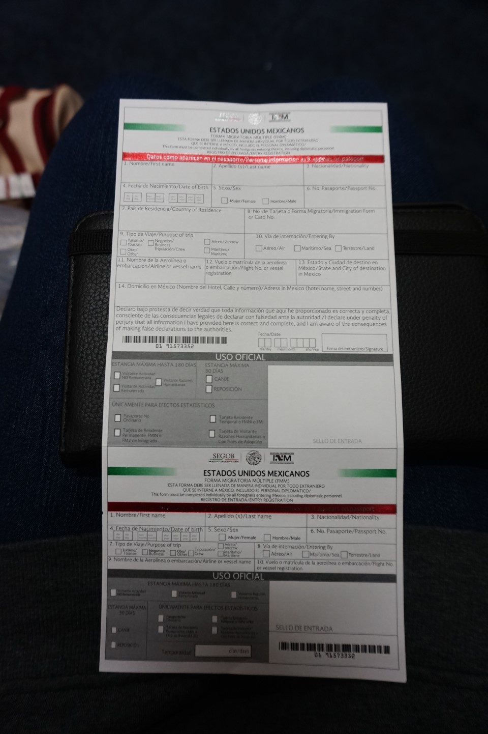멕시코에 들어가는 입국서류 작성하고! 밑에 있는건 나중에 뜯어서 주는데요~
