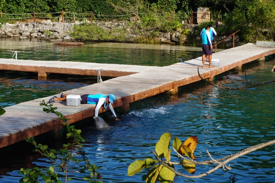 밥을 먹고 사진도 찍고 주변을 둘러보고 있는데~ 돌고래랑 같이 수영할 수 있는 곳이 있었어요!