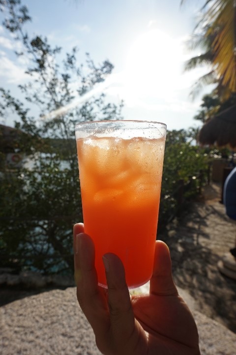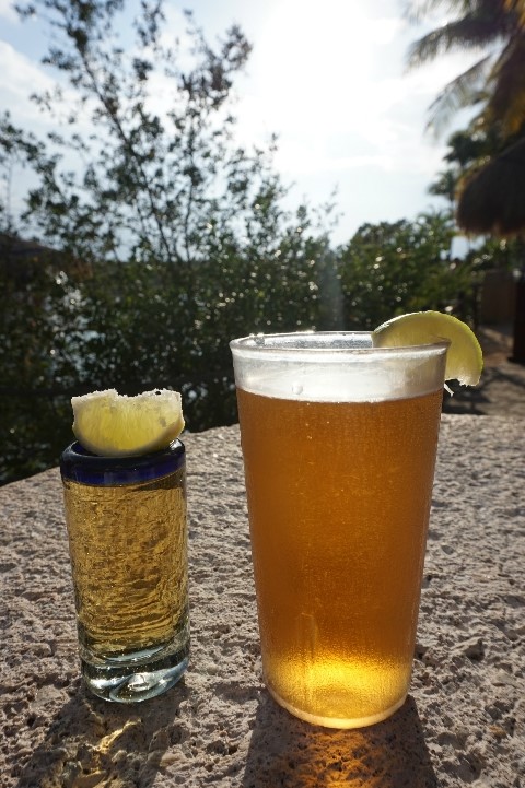 바에 앉아서 색이 이뻤던 과일데킬라랑 데킬라, 맥주도 마셨어요!