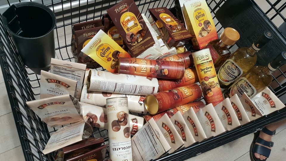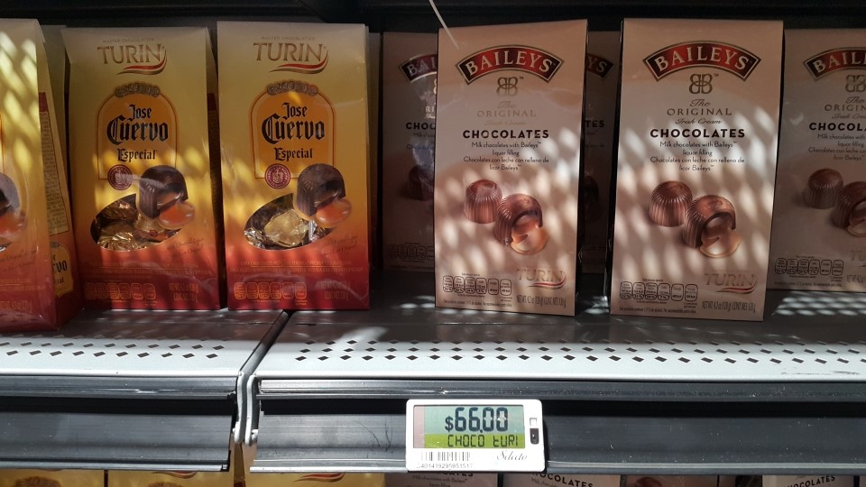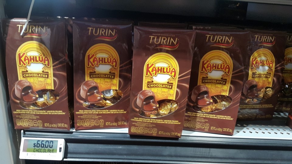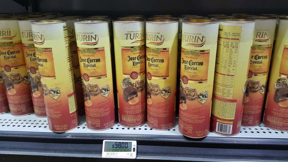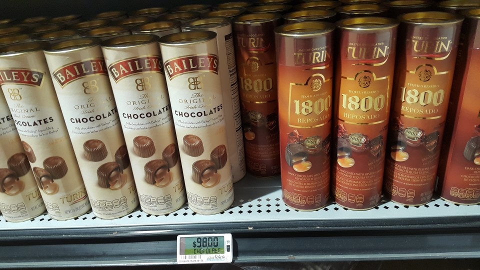 데낄라가 들어있는 초콜렛을 사러 초콜렛 코너로 왔어요.