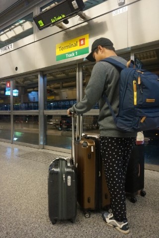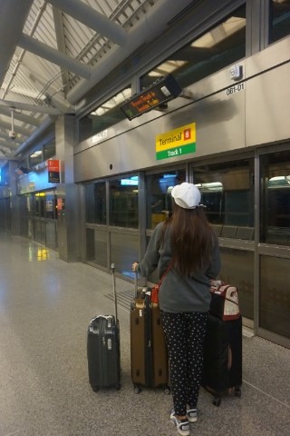 터미널 8번에서 트레인을 기다리고 있어요!