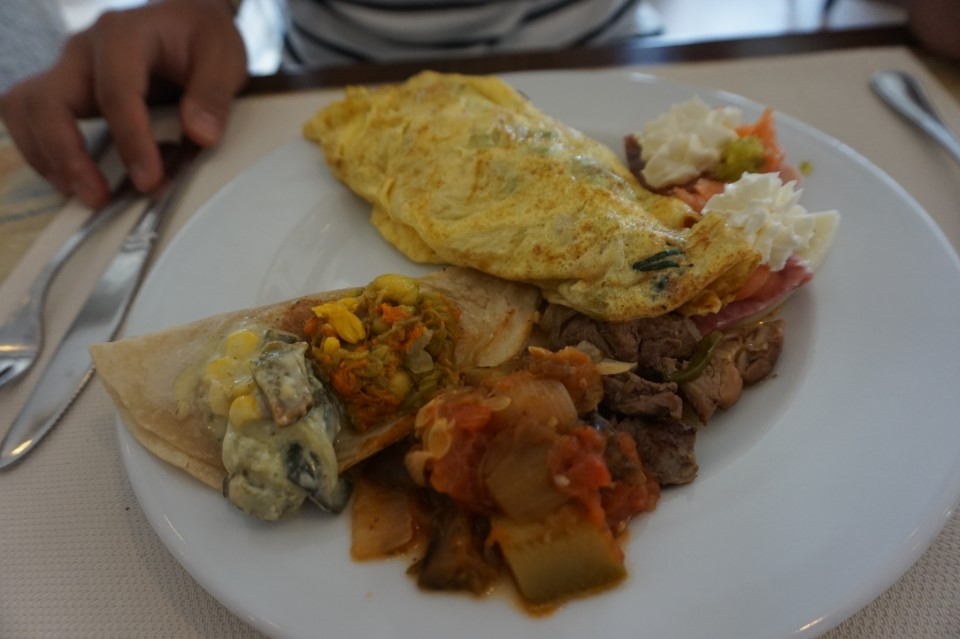 조식을 먹으러 레스토랑에 갔어요.