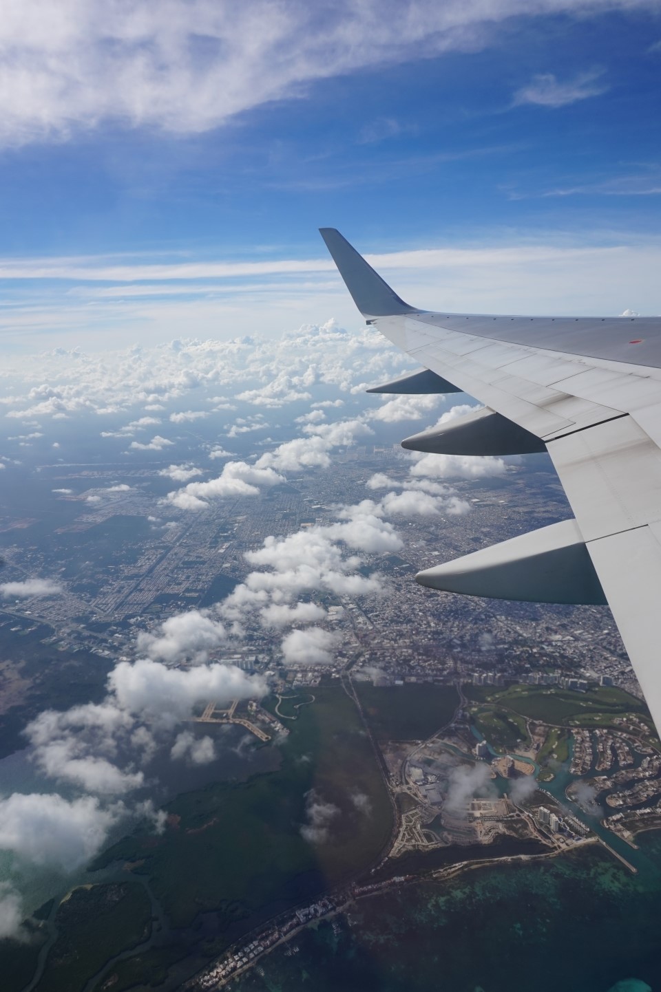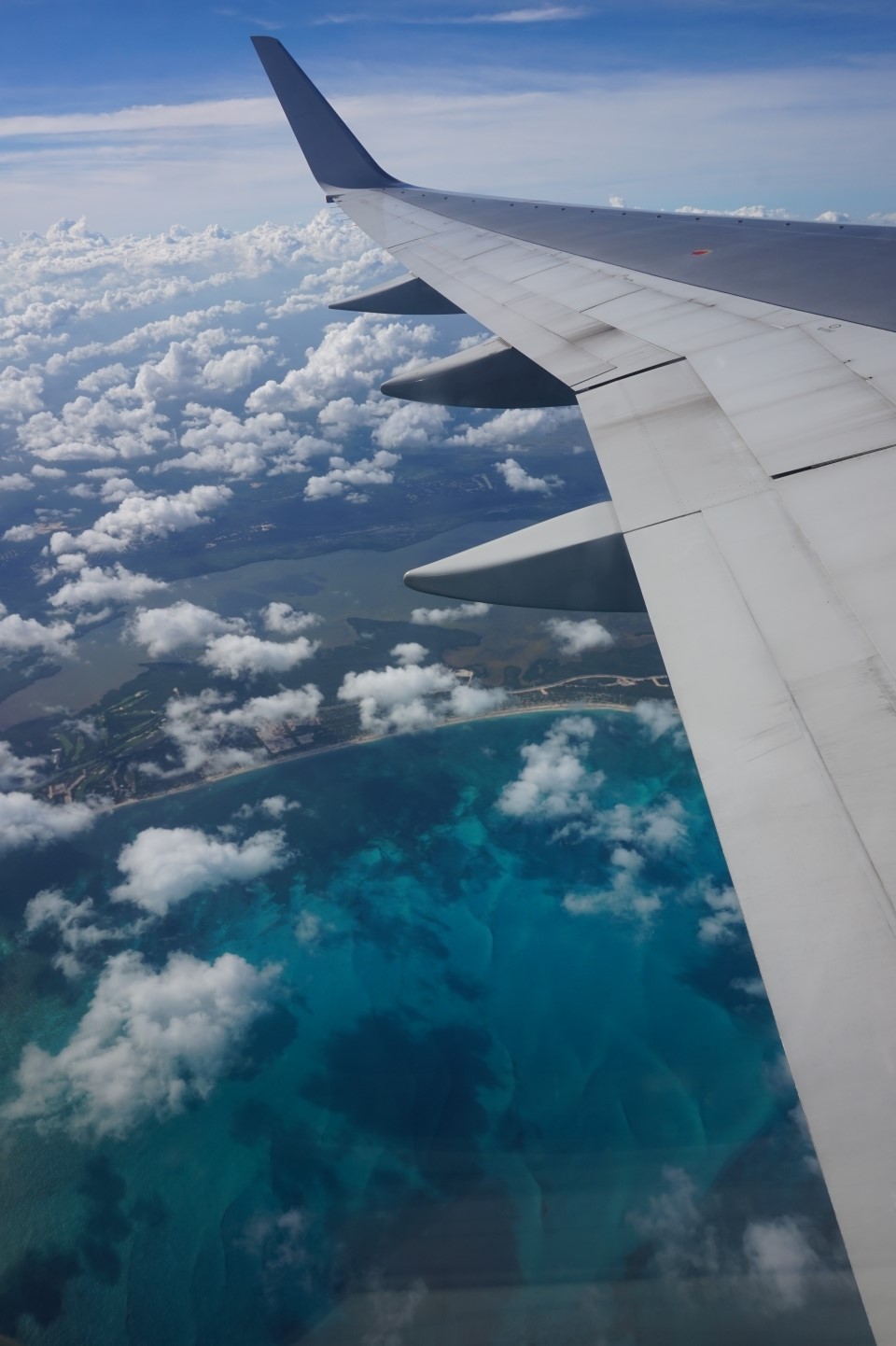 구름 위를 나는데... 바다를 보고 한번 또 깜짝놀랐네요!