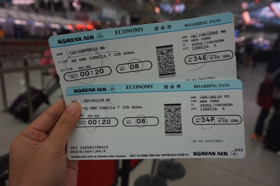 우리 뉴욕-인천행 다시 예약했고 대한항공으로 업글됐다고 말하니까