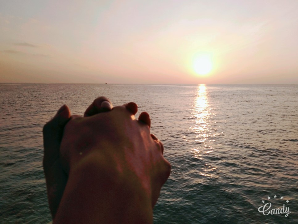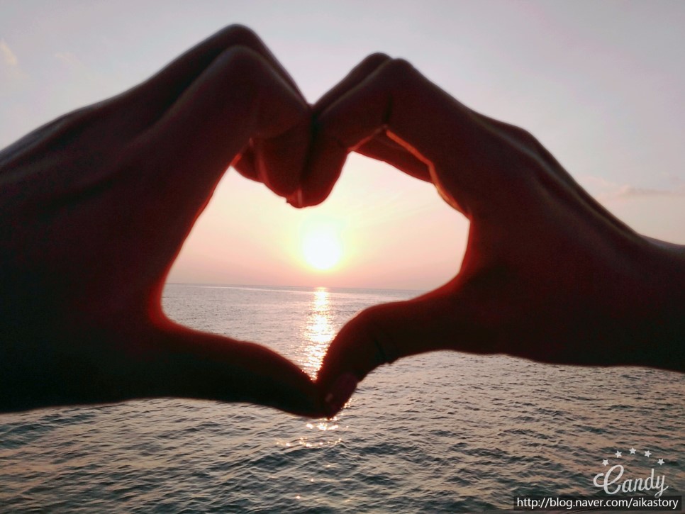 마지막 석양을 바라보며 두 손 꼭 맞붙잡고 꽁냥꽁냥.