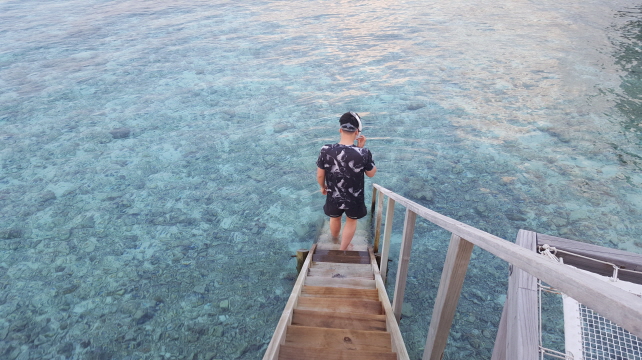 객실 앞 테라스 한켠 계단으로 내려가면 바로 바다로 들어가기 때문에 너무 좋았어요.