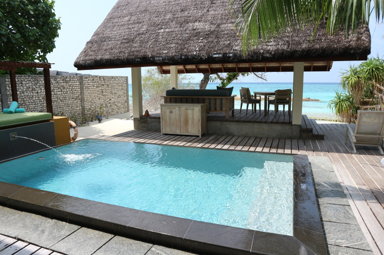 총 5박 중에 2박은 비치방갈로, 3박은 워터빌라에서 지냈습니다.