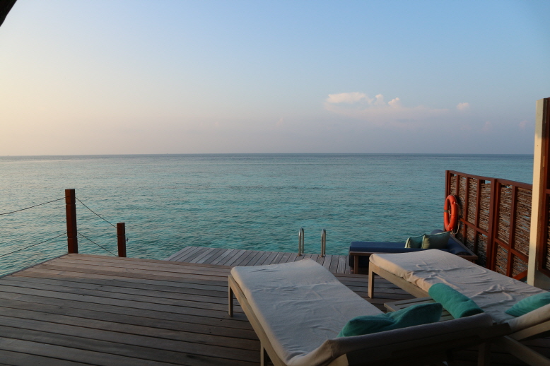 워터빌라에서 바다쪽 문을 열고 나와서 보이는 풍경입니다.