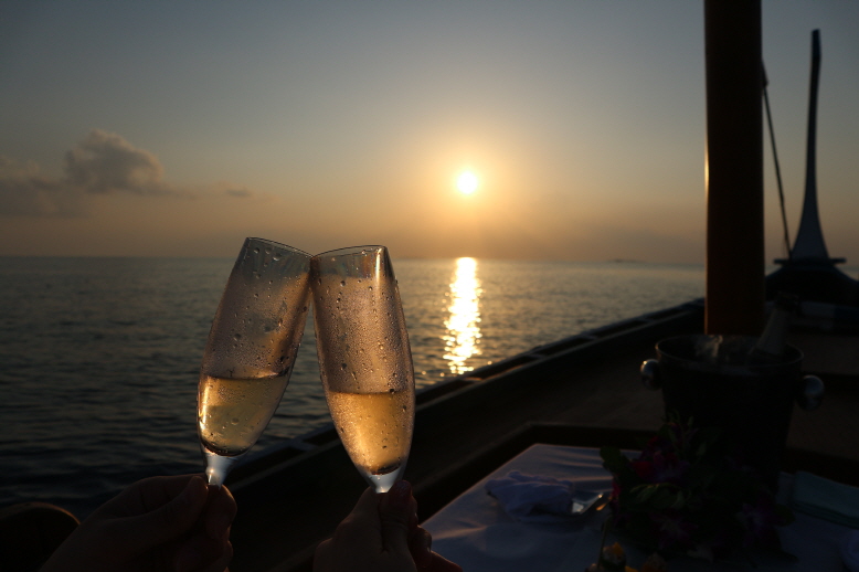 미리 예약해서 선셋시간에 맞춰서 단 둘이서만(사공아저씨도 타지만) 샴페인을 마시며 뱃놀이를 즐길 수 있는 시간을 가졌는데 정말로 로맨틱하고 바다에 우리 부부 둘만 떠있는 것 같고 환상적인 시간이었어요.