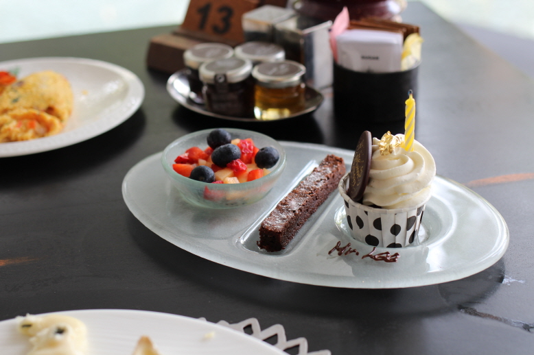 조식을 카페란다에 가서 먹었는데 샴페인과 귀여운 미니케익을 준비해주셨어요~