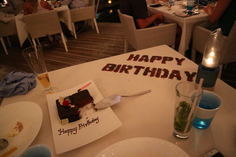 저녁을 먹은 블루에서는 아예 테이블에 HAPPY BIRTHDAY라고 세팅까지 해놔주시고 케익커팅까지 하도록 해주셨어요.