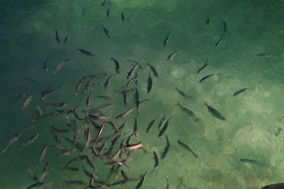레스토랑에서 빵조각 뿌려주니 무섭게 달려들던 물고기들...