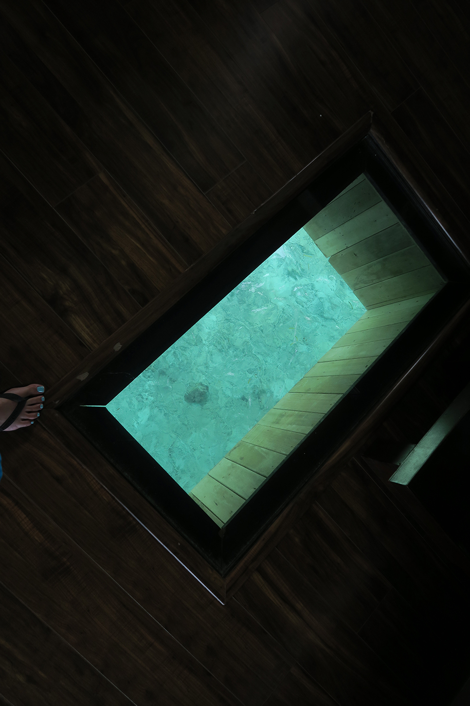 룸 바닥에 있는 유리를 통해 물고기도 종종 만나요~