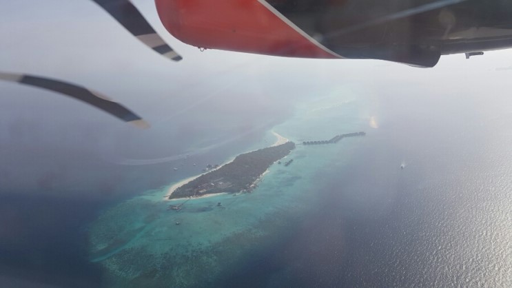 수상 비행기에서 내려본 포시즌 란다의 모습이예요 ~ 수상비행기에서 내려다보는 몰디브의 모습도 너무 신기하고 아름답더라구요~ 수상비행기에서 내리면 다시 2-3분 정도 보트를 타고 리조트까지 이동해요