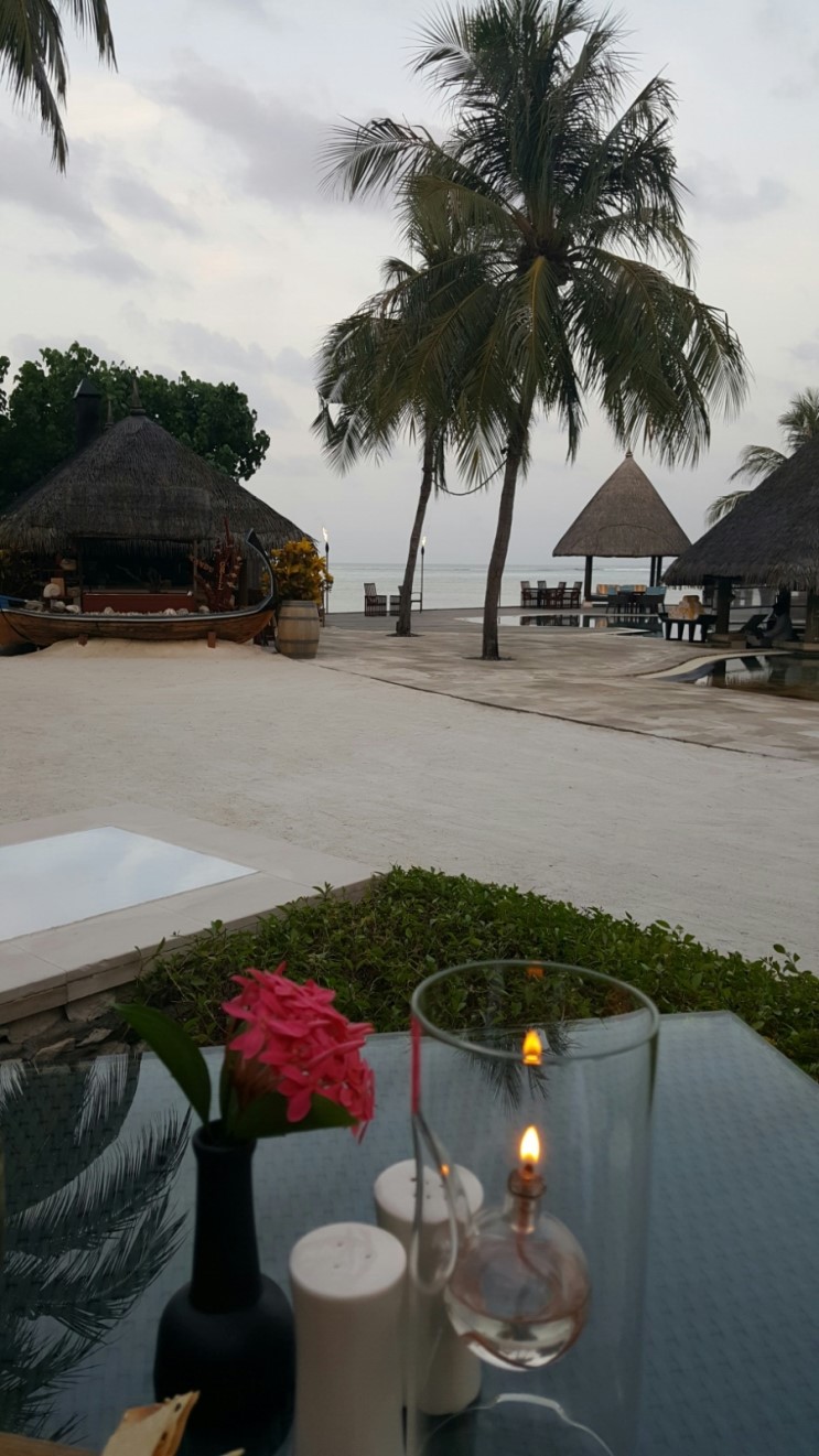 그래서 포시즌 란다의 자매 리조트인 쿠다후라 리조트에 가서 저녁도 먹고 구경도 하다가 비행출발전 2시간전에 스피드보트로 말레 항공에 도착했어요 ~ 1인당 150달러여서 작은 돈은 아니지만 그래도 저녁도 코스요리로 맛있었고 비행기타기전에 씻고 또 란다이외의 다른 리조트 구경도 할 수 있어서 전 만족해요