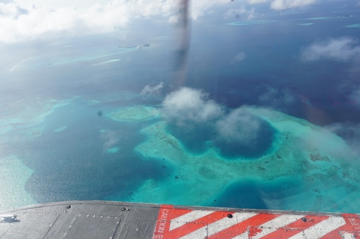 수상비행기에서 본 몰디브 바다는 요로코롬 이쁘더라구요^^