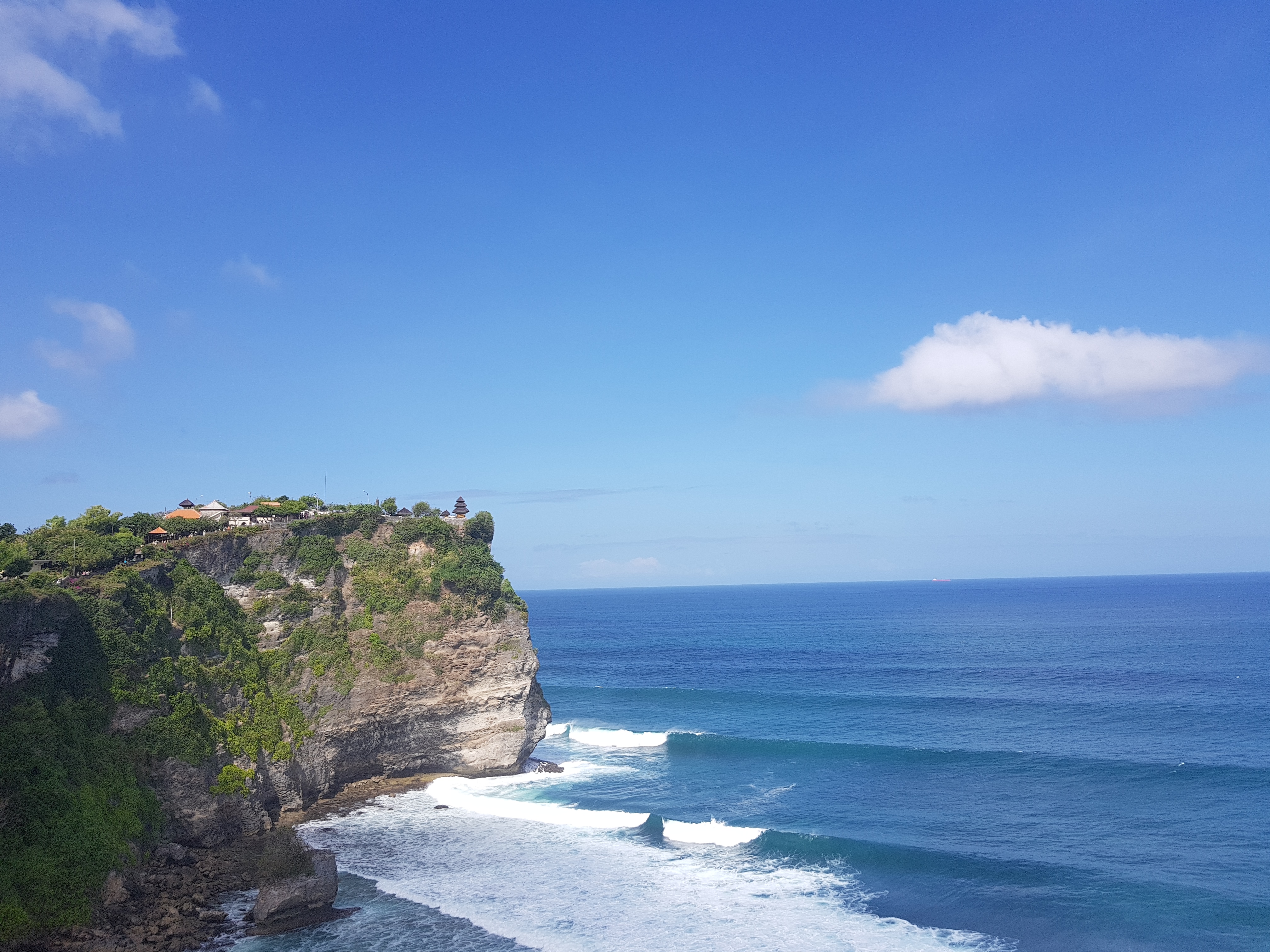 울룻와뚜 사원은 절벽아래 있는 사원인데 그야말로 장관이더라구요, 눈이 시릴정도로 새파란 바다와 코끼리신이 새겨진 사원을 둘러보고, 안경을 뺏는다는 원숭이도 여러마리 봤는데, 마냥 귀엽더라구요~~