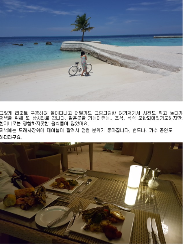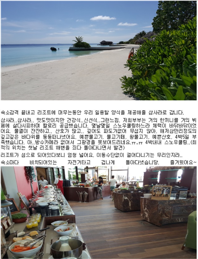 잘 놀다 올수 있었어요.ㅋ 몰디브 주메이라 비타벨리 어딜가도 예쁜 수중환경에 정말 각종 물고기들도많아 스노우쿨링하기 넘 좋았답니다. 다시가고싶네요 x100