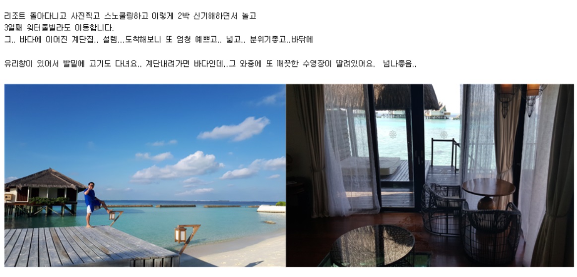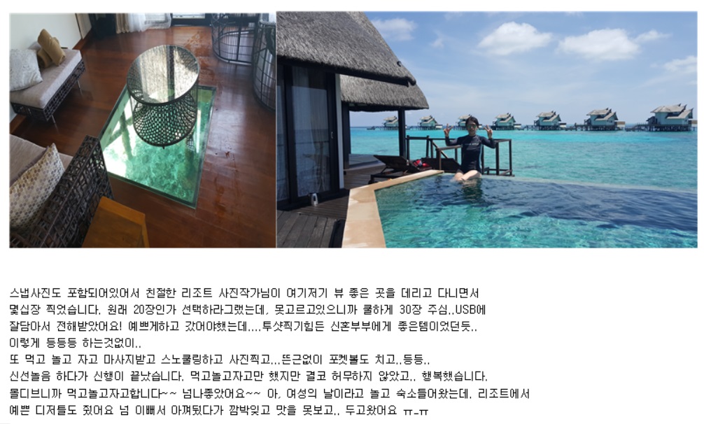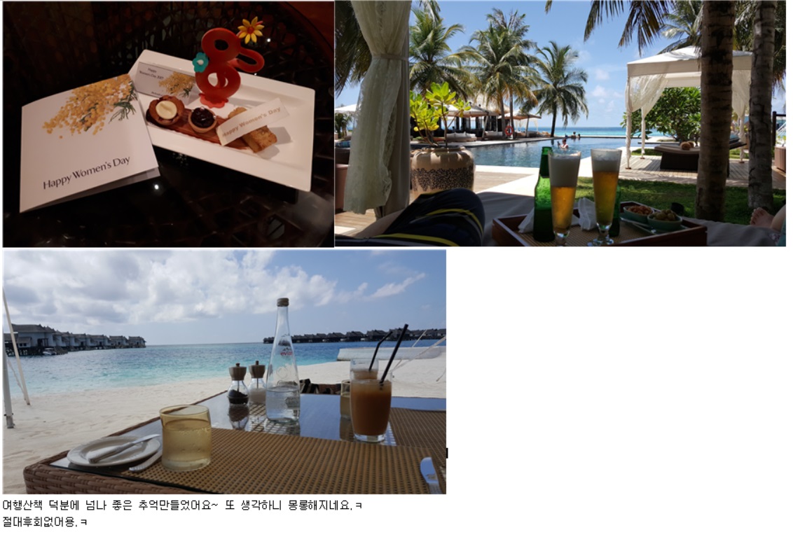 저희는 김규장 팀장님이 몰디브여행 진행해주셨고, 여행하는 동안 문의드리면 정말정말 빠른 피드백 덕분에 안심하고