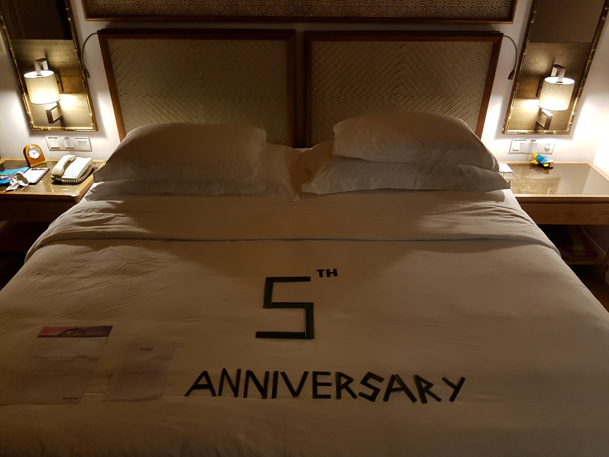 익스커션 후 돌아오니 침대에 5주년 기념이라고 또 예쁘게 꾸며주셨어요~