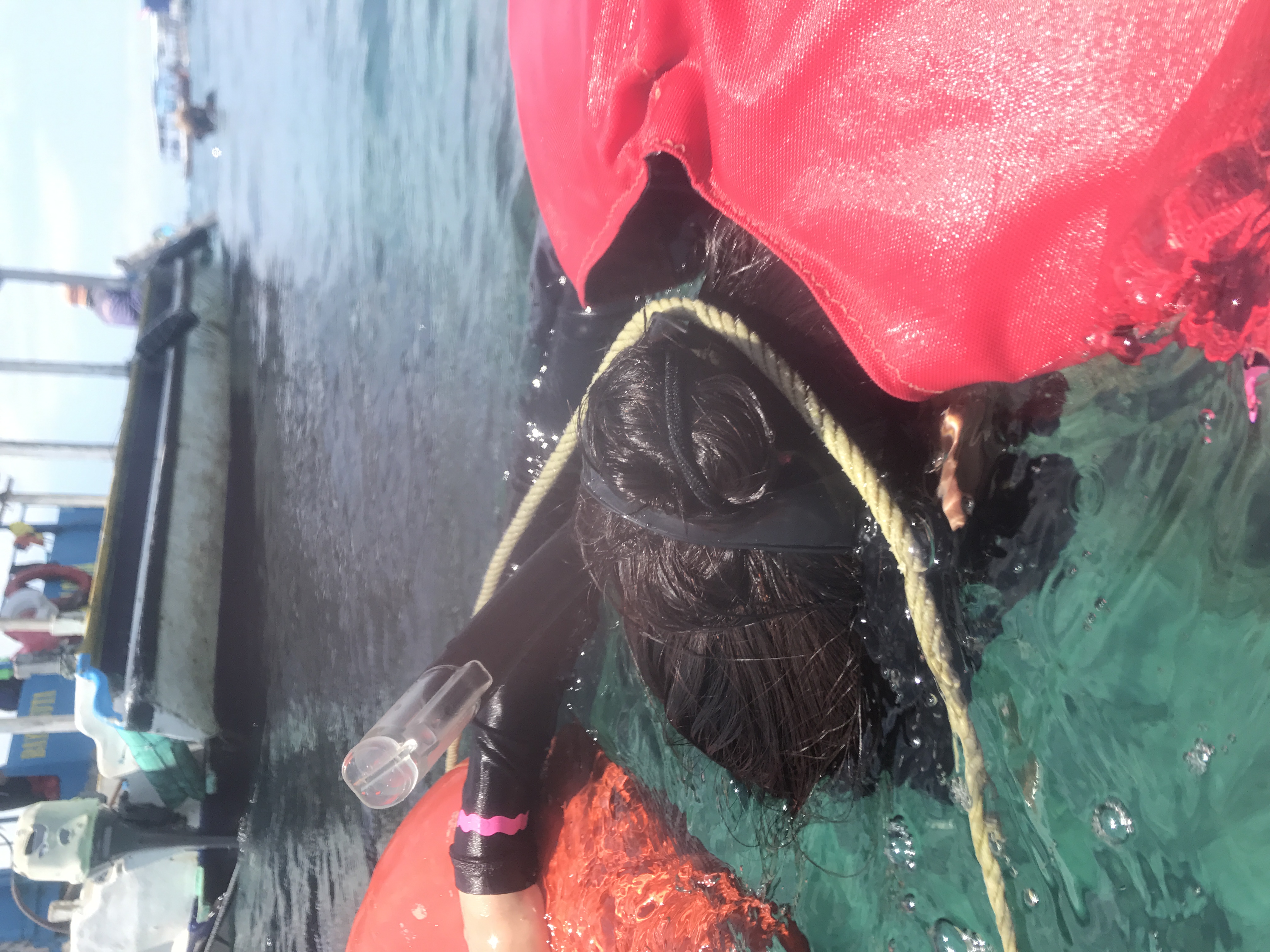 스노쿨링은 보트를 타고 3분정도 바다를 달려서 물위에 떠있는 배위에서