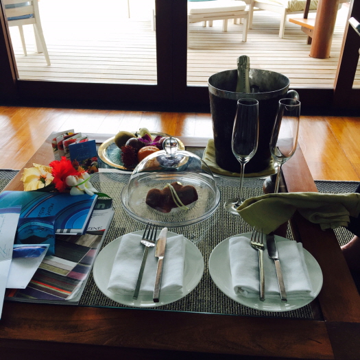 도착하면 허니문 특전으로 웰컴 샴페인과 케이크가 있습니다.