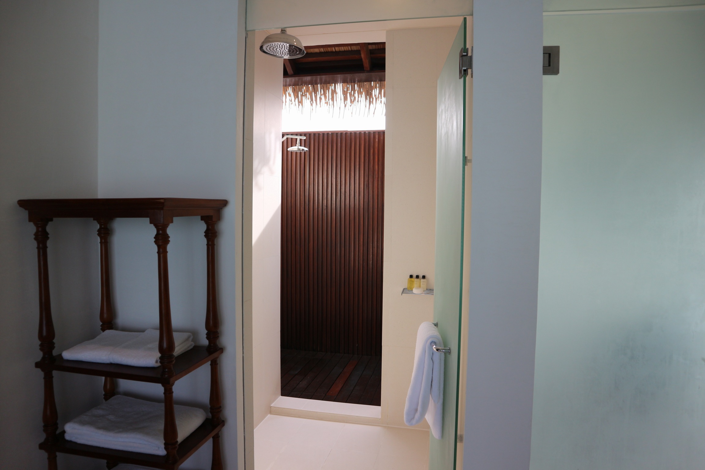 샤워부스 안쪽보면 샤워하는 공간이 또 있는데 아래가 바다로 연결되어 있어서 스노쿨링이나 풀장에서 놀고 난 후 물로 헹궈낼 때 이용했어요.