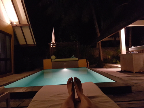 저희는 비치빌라 위드 풀 2박 + 선라이즈빌라 위드 풀 3박으로 묵었어요.