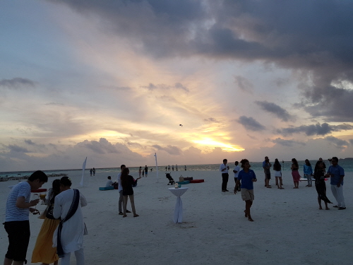 백사장에 앉아 선셋을 즐기다가..