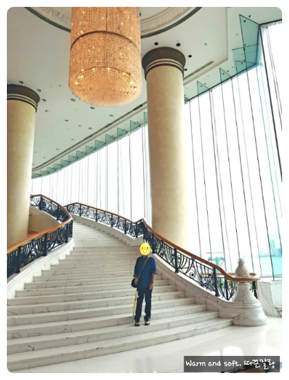 입구부터 멋진 하버그랜드구룡호텔. 저 앞에서 인증샷을 찍거나 웨딩촬영을 하는게 그리 대세라고 해서 우리 멋진 남편도 한 장 찍어줬다. 이 호텔은 크게 두 가지 메리트가 있다고 설명을 들었는데 하나는 하버뷰에서는 8시에 더 심포니 오브 라이츠를 볼 수 있다는 것. 또 하나는 옥상에 전지현이 출연했던 도둑들 촬영장소였던 옥외수영장이 있다는 것. 그렇게 뷰가 아름답다고 해서 선택한 하버 그랜드 구룡 호텔.