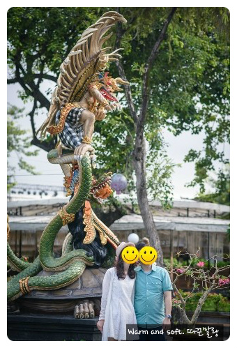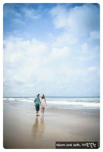 여행산책 양수진 대리님과 듀이가 일정을 잘 조정해준 덕분에 우리는 무사히 한국 스냅 작가님과의 스냅을 찍을 수 있었다. 스냅은 요즘 신행을 다니는 사람이라면 누구든지 꿈꾸는 일정! 게다가 나는 일단 여행은 사진이 다 남겨준다는 생각을 갖고 있어서 스냅을 꼭 찍고 싶었다. 현지 스냅 작가님과도 촬영을 한 우리. 결국 스냅 일정이 두 번이나 들어 있었던 것이다. 그렇게 무리해서까지 한국인 스냅 작가님과의 일정을 넣은 이유는 현지 스냅 작가님이 풀빌라에서의 촬영 일정만 잡기 때문이었다. 바다 사진과 현지 느낌이 가득한 스냅도 같이 찍고 싶었던 우리는 이렇게 두가지 일정을 여행사에 부탁하여 넣게 된 것이다. 낙조 사진이 찍고 싶었지만 날씨가 받춰주지 않아 우선 발리의 느낌이 나는 장소에서, 그리고 우리 첫 일정 장소인 꾸따 해변가에서 이렇게 사진을 찍었다. 식사시간까지 2시간 남짓 주어진 짧은 시간이었지만, 덕분에 예쁜 사진을 많이 남길 수 있어서 참 뜻깊은 시간이었다.^^ 날씨는 참 아쉬운 요소이긴 했는데, 10월은 건기라서 맑은 날씨를 기대했었는데 생각보다 흐린 날이 많았다. 아마 발리의 아궁 화산 폭발 전조가 있어서가 아닌가 싶다. 신행을 준비하면서 정말 해보고 싶은 건 다 원없이 해본 듯. 이렇게 뜻깊은 시간을 가질 수 있도록 일정을 배려해준 여행산책과 듀이에게 다시 한 번 감사한 마음이 든다.