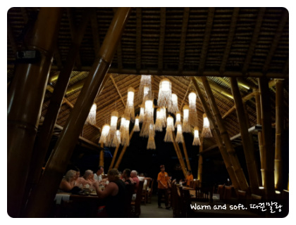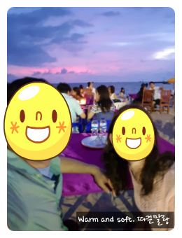 여행하는 동안 날씨가 흐려 많이 아쉬웠었는데, 정말 다행이 우리가 로맨틱한 저녁을 보내려는 걸 어찌 알았는지, 이날 하늘은 내가 처음으로 보는 분홍분홍한 낙조를 보여주며 아름다운 저녁 식사로 우릴 초대했다. 정말 어찌나 이국적이었는지 다른 건 다 잊고 사진찍느라 정신이 없었는데, 랍스터 & 씨푸드와 밥이 어찌나 맛나던지, 또 뒤에서 추시는 발리 전통 춤인 께착댄스가 어찌나 아름답던지, 무엇보다 모래사장에서 벌레 없이 이런 예쁜 조명 속에서 사랑하는 사람과 함께 식사한다는 것이 어찌나 낭만적이던지, 둘째날도 또 감동하며 식사할 수 있었다.