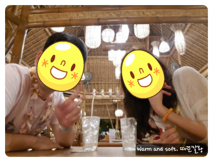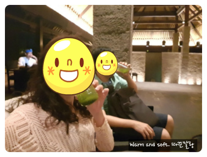 얼굴을 가리긴 했지만, 사진 속에 우리 둘은 둘다 입에 미소를 그득그득 머금고 있다. 아주 행복해서 죽겠는 두 사람. 이러한 행복한 기분을 가득 안고 우리의 첫 풀빌라의 밤이 어두워지고 있었다.