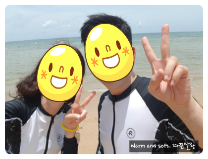씨워킹 체험장소에 갔더니 아름답고 맑은 바다가 펼쳐져있다. 생각보다 수심이 깊지 않아 신기했던 기억이! 우리 말고도 여러 팀이 이미 준비중이라 우리는 기다리며 열심히 사진을 찍었다ㅋㅋㅋ