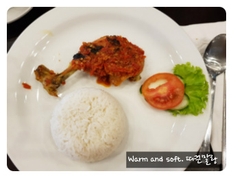원래 구성은 씨워크 + 한식이었으나, 이 식당에서 현지식도 한다고 하여 현지식을 먹었다. 늘 생각하지만 삼발소스는 마성의 소스인듯! 닭다리의 맛이 꿀맛으로 변한다.ㅠㅠ 사실 닭다리는 늘 진리이긴 하지만..ㅠㅠ 마사지는 총 4번, 만다린 황실 맛사지, 쵸콜릿 스톤 스파, 아로마오일 맛사지로 구성되어 있었는데, 그 중 하루는 불가리에서 스파, 또 마지막 날에 첫날 받지 못했던 일정인 더 반자르 최고급 아로마 스파 맛사지가 예정되어 있어서 다른 두 날은 쵸콜릿과 황실 마사지를 받기로 이야기를 모았다. 사진을 찍진 못했지만 우선 쵸콜릿 스톤 마사지를 선택했다. 달달한 향과 함께 뜨끈뜨끈한 돌로 몸의 근육을 풀어주는 마사지 시간은 그동안 결혼과 빡빡한 신혼여행 일정으로 피로해진 우리 몸을 풀어주는 행복한 시간이었다!