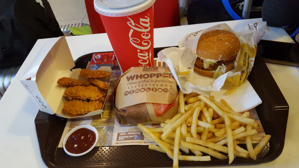 ?공항에 와서 저녁먹으러 버거킹에 갔는데 이때 시간이 9시가 넘었어요. 공항에 사람이 많아서 발권받는데 시간이 많이 걸렸어요. 그리고 버거킹 가격은 한국 생각하시면 안되요. 물가가 비싸서 그런지 프랜차이저인데도 금액 차이가 많이 났었어요. 저 만큼 시켰는데 30불이 넘었었어요. 그래도 맛있게 먹었어요.