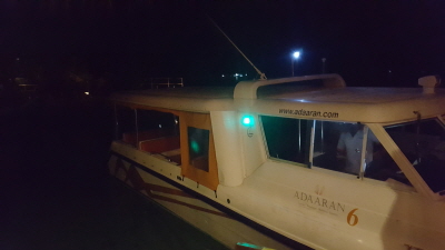 데이룸에서 6시 정도까지 쉬고 있으니 버틀러가 와서 결제하고 사람들 기다리니 거의 7시가 되어서 리조트에서 공항으로 갈 수 있었어요. 리조트 올때는 10분 정도 걸린거 같은데 갈때는 길이 좀 달라서 그런지 20분 정도 걸렸어요. 올때 보지 못했던 말레 시내도 바다에서 볼 수 있었구요. 속도가 빠른 스피드 보트를 어두운 밤에 타니 조금 무섭긴 했어요.