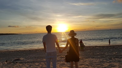 3. 반얀트리 이동중 짐바란 비치에서 석양 보면서 저녁 먹는데 (랍스터 씨푸드 디너) 시간 타이밍 딱좋고 바다에는 여기저기 다 레스토랑에서 석양보면서 식사.