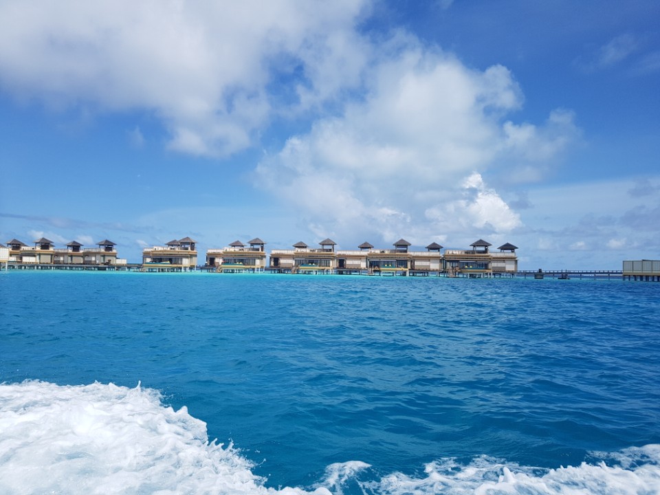 기다리고 있던 스피트 보트를 타고 3분? 정도 리조트로 이동합니다. 인오션빌라에 묵을 우리커플을 먼저 내려주고 비치빌라로 이동하는 것 같았어요