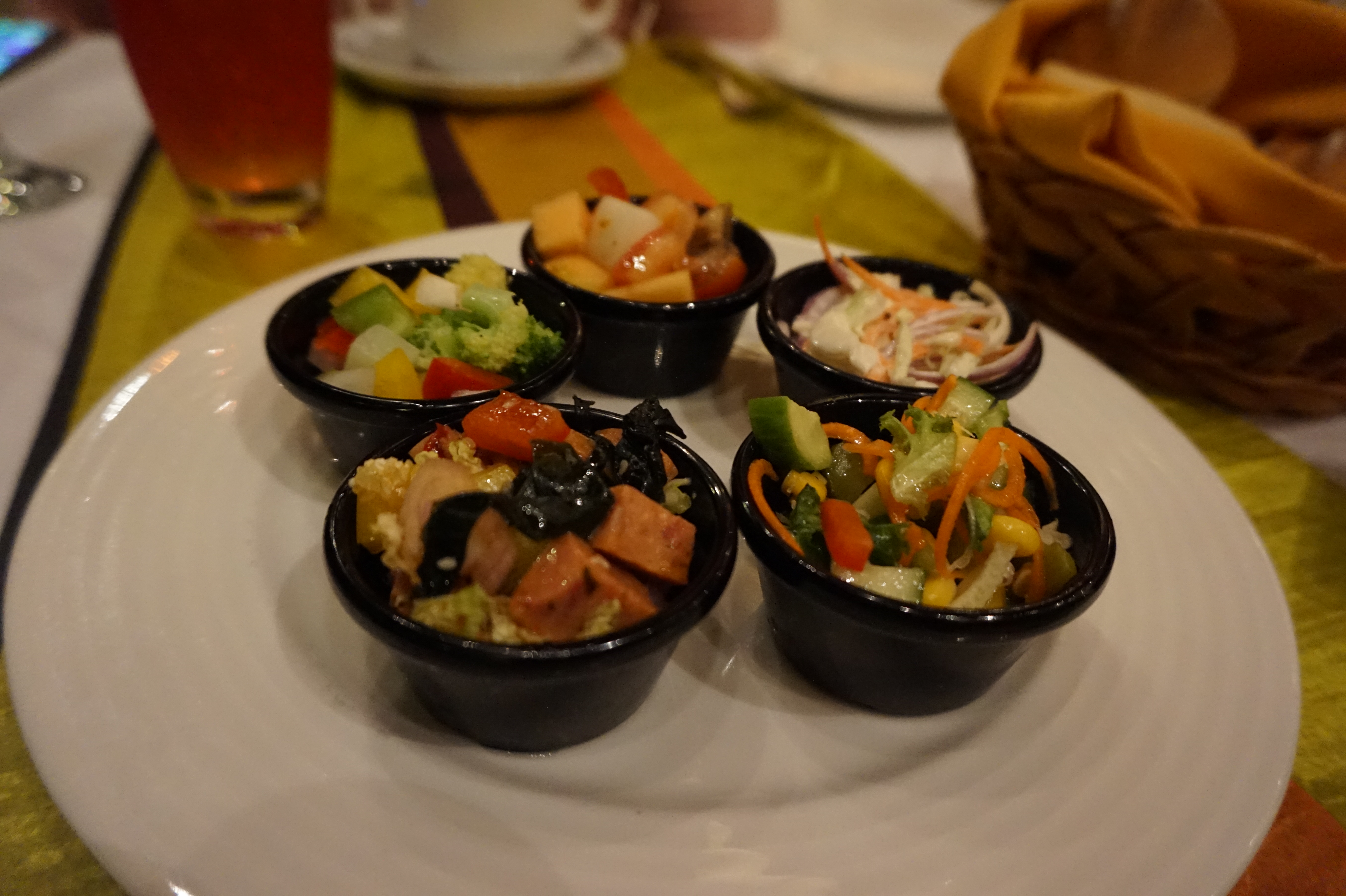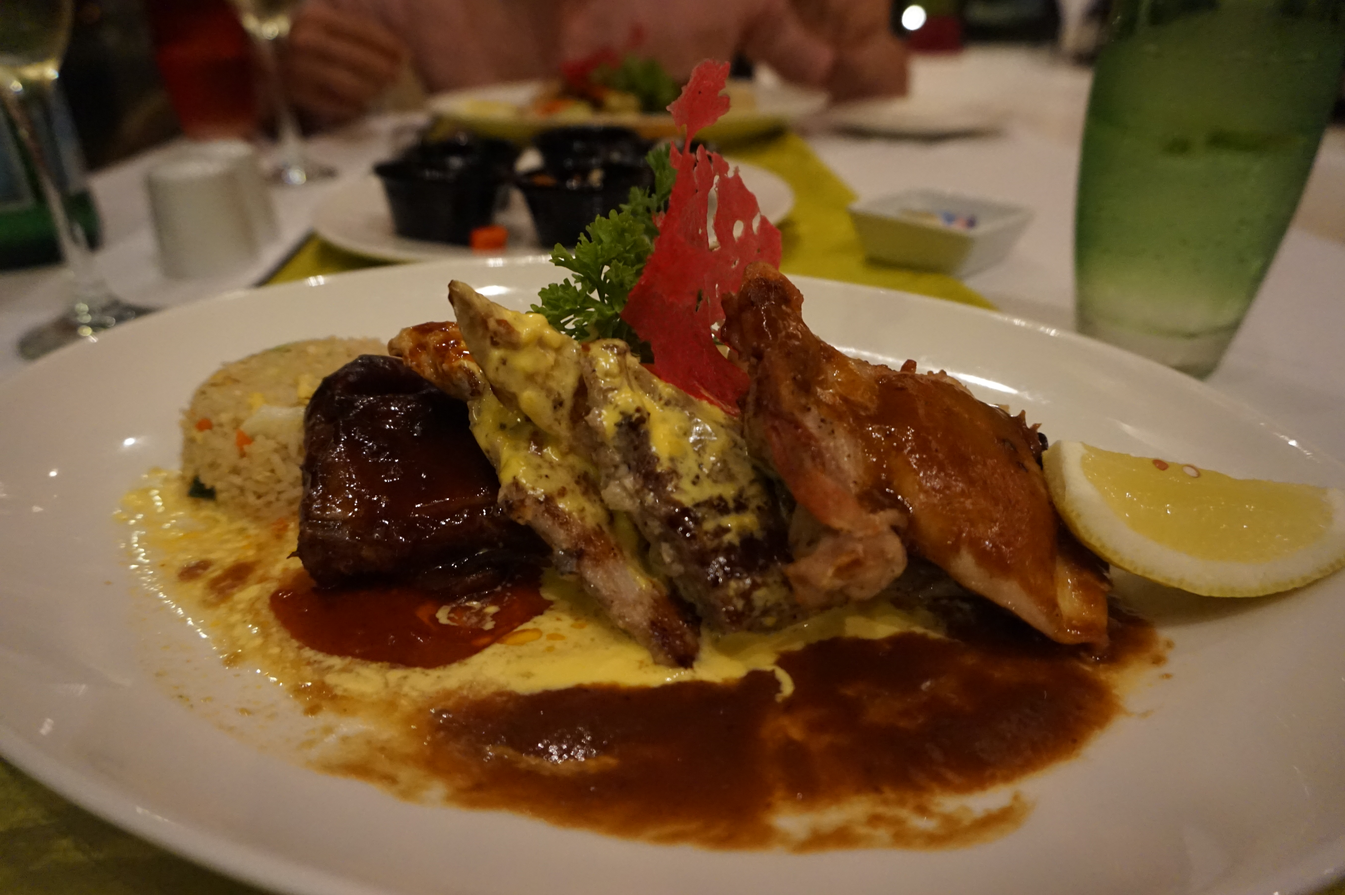 위 사진은 전채요리(샐러드같은거였고..) 오른쪽사진은 볶음밥, 닭가슴살, 소고기, 생선요리 나온 메인메뉴입니당..